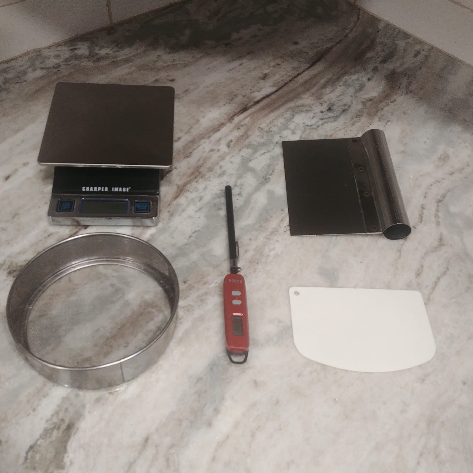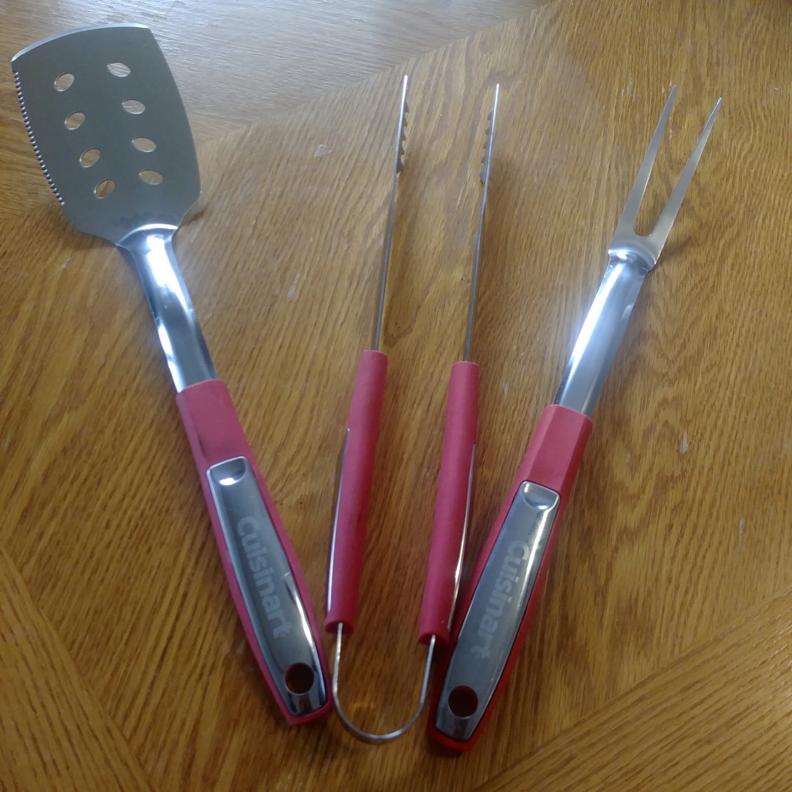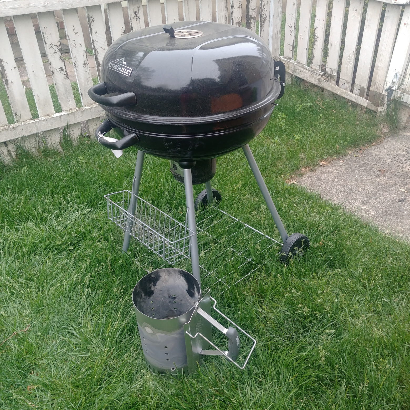 Barbeque grill with a chimney charcoal starter. Includes a set of tools.