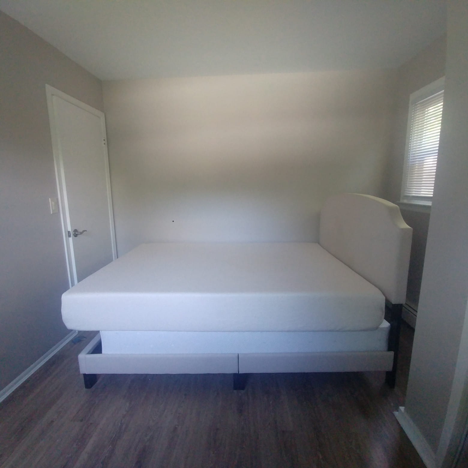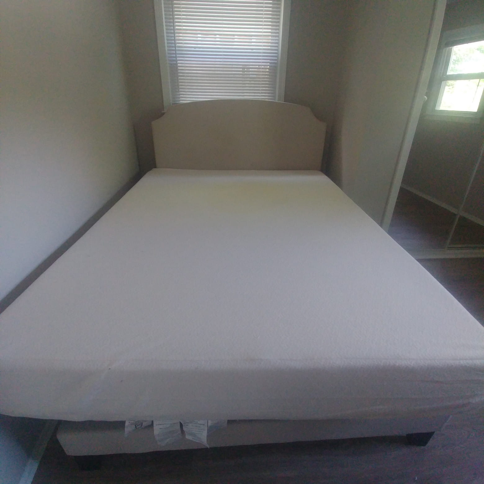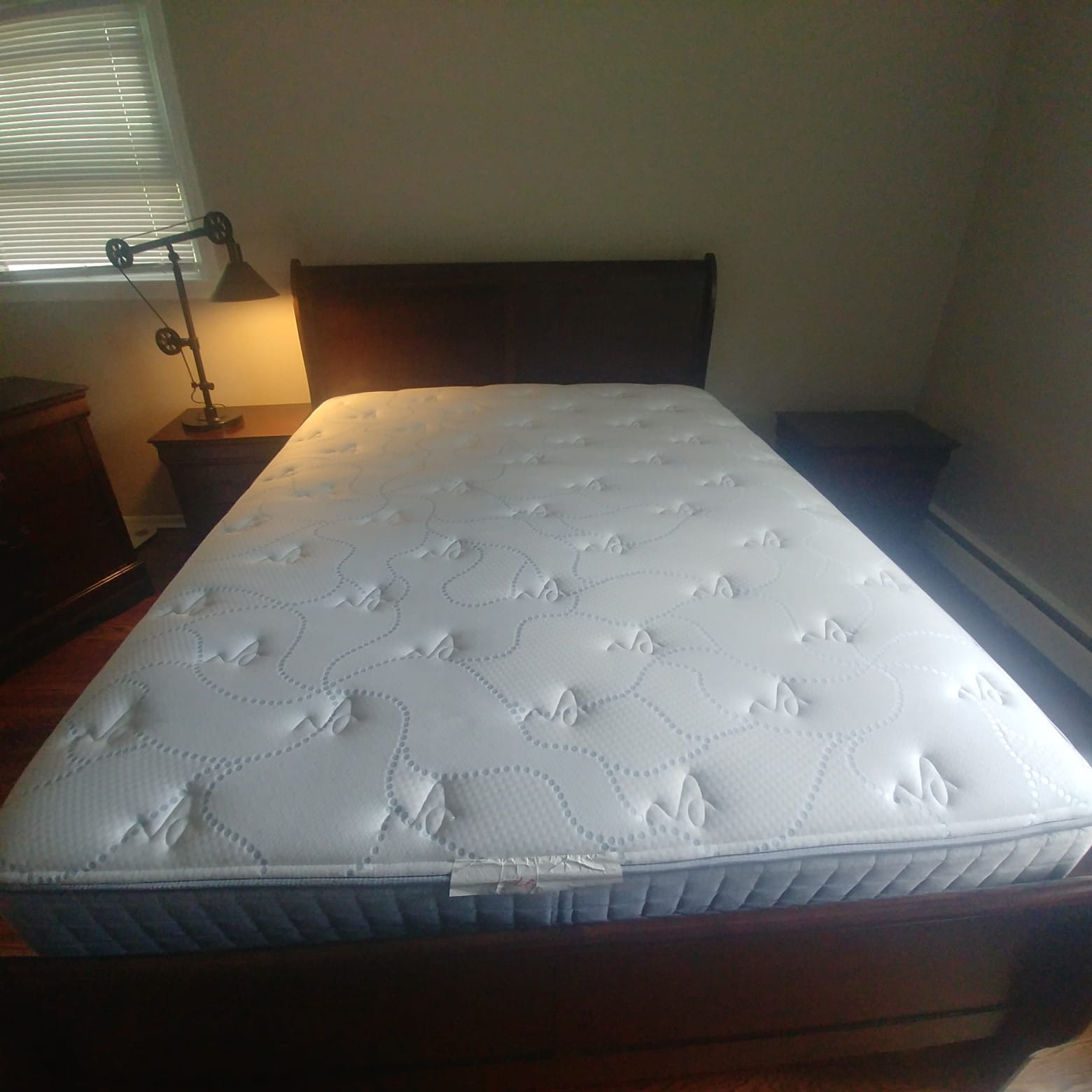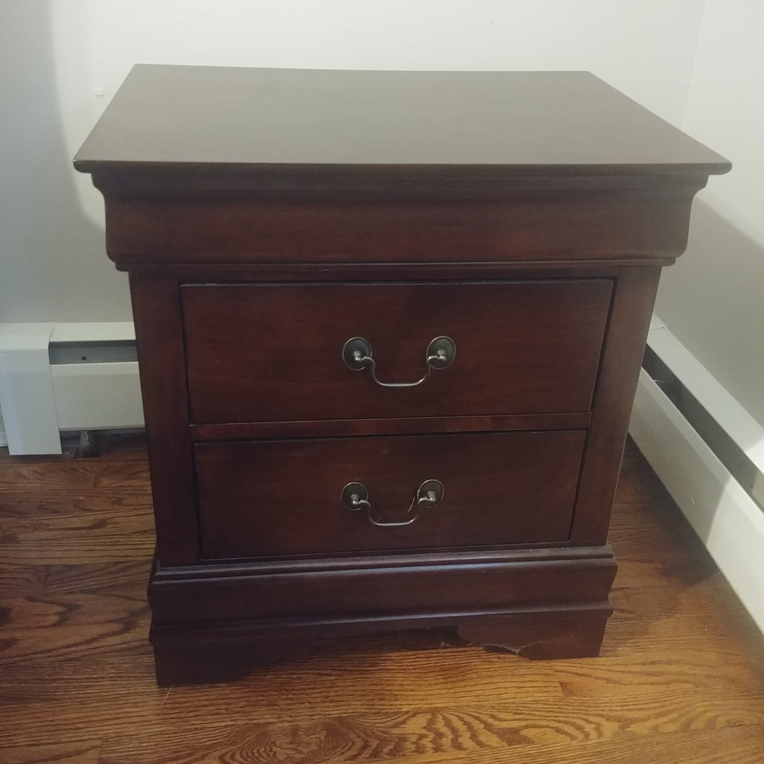 Bed with box-springs and a pocket spring mattrass. Includes matching nightstands, only 1.5 years old.