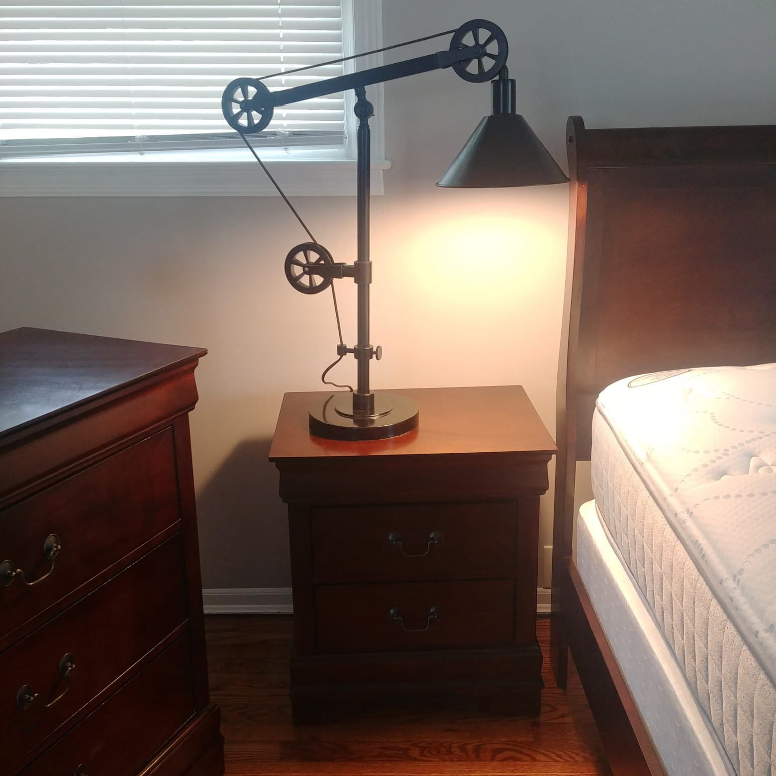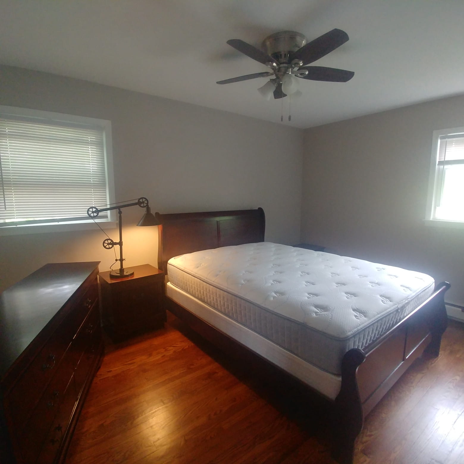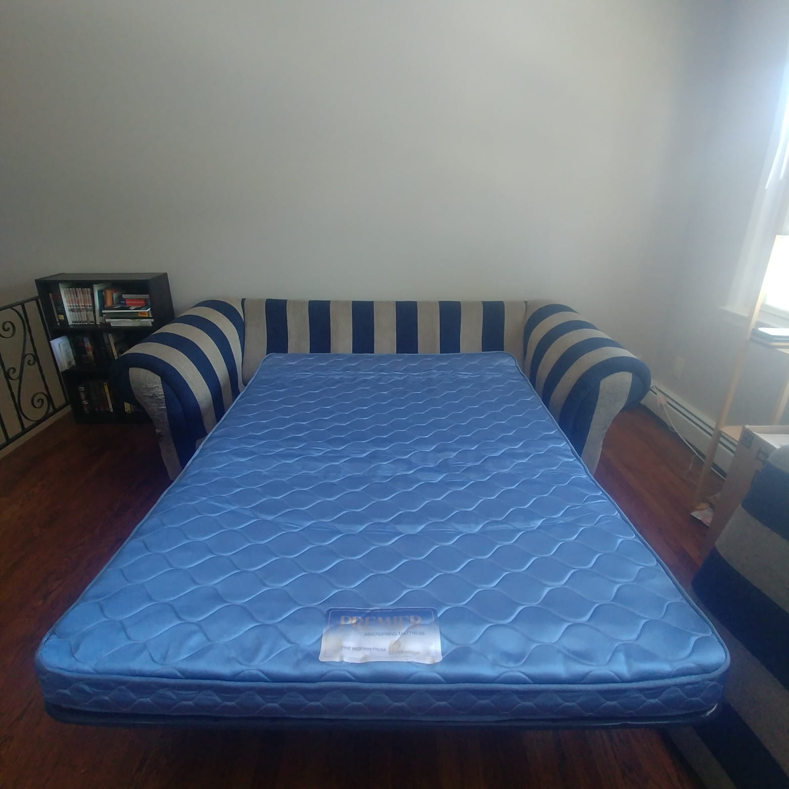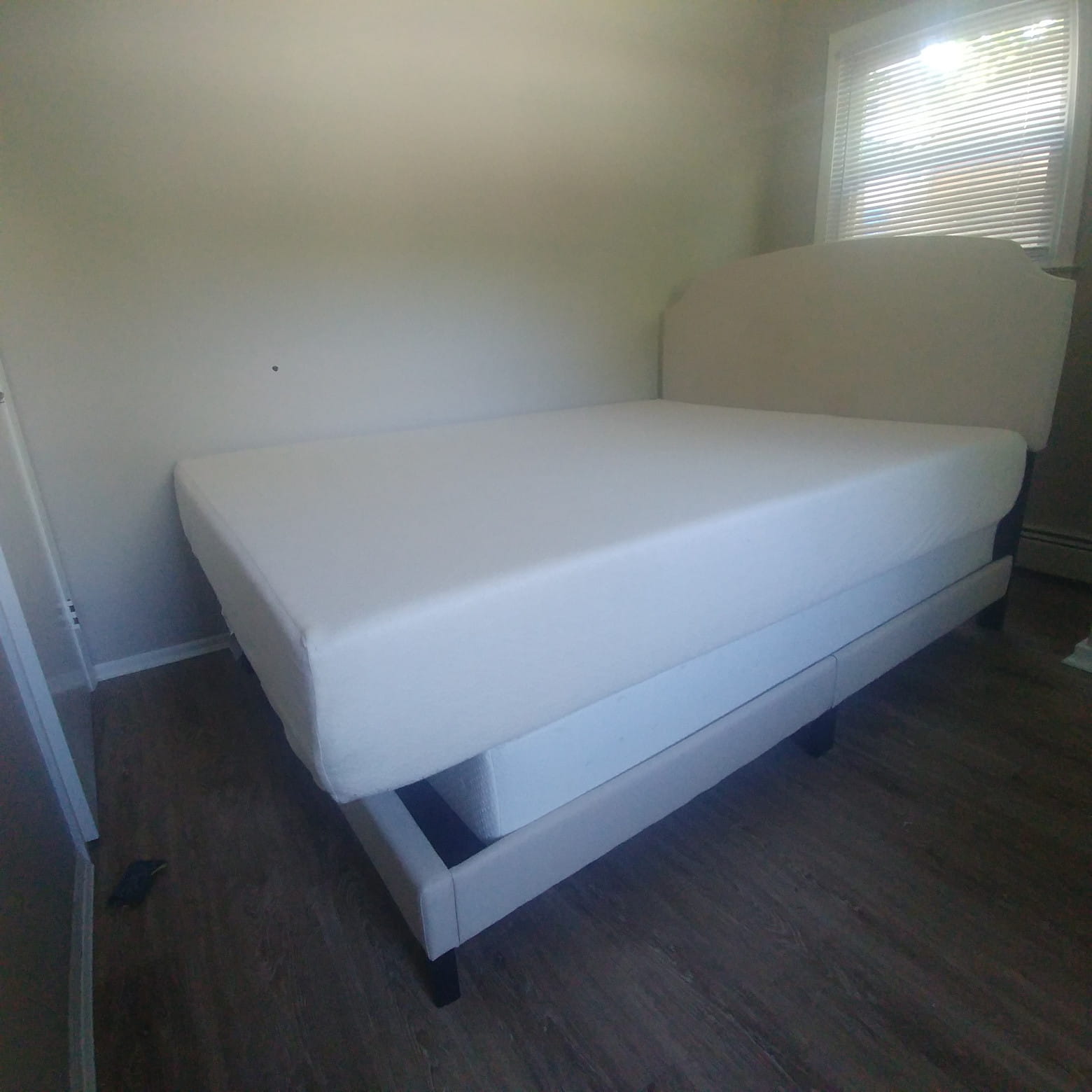 Bed with box-springs and a pocket spring mattrass. Includes matching nightstands, only 1.5 years old.