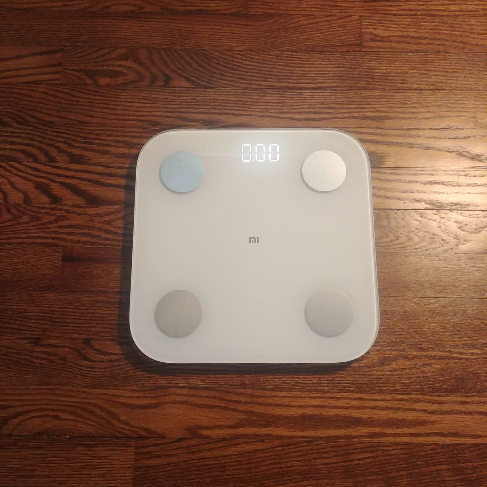 Xiaomi Mi smart body scale. Has Bluetooth to connect to other devices and measures body composition as well.