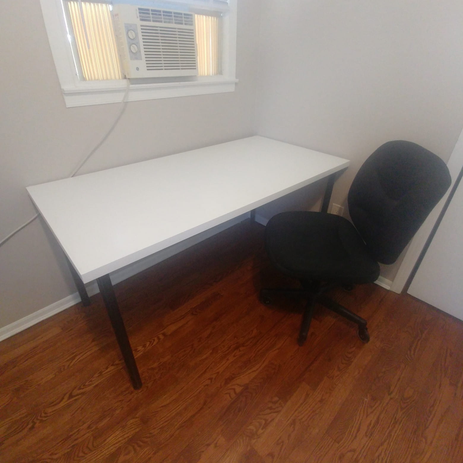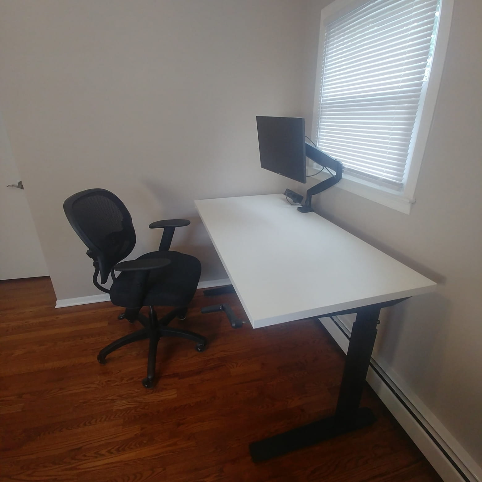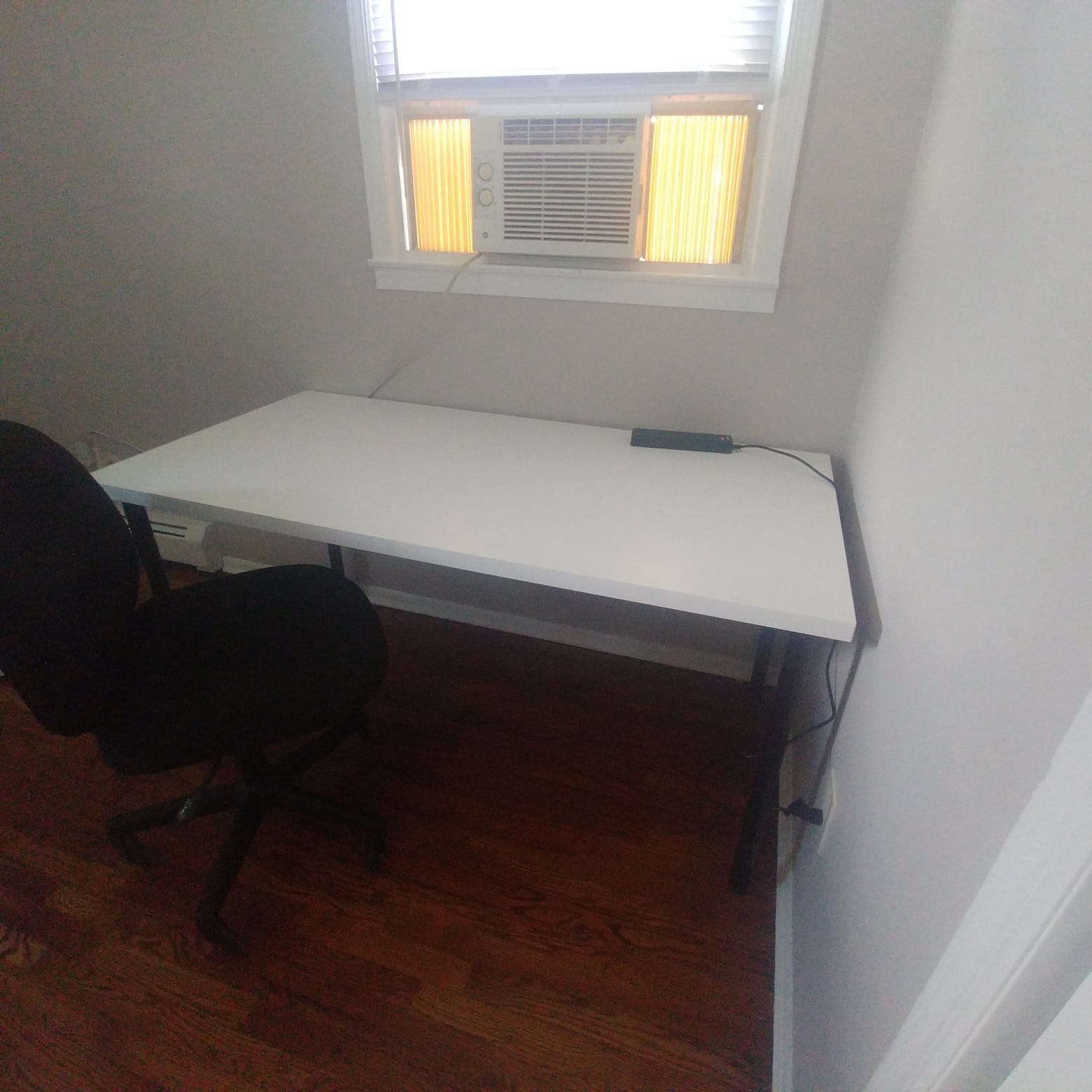 IKEA desk with height adjustable legs. Power strip with USB ports included.