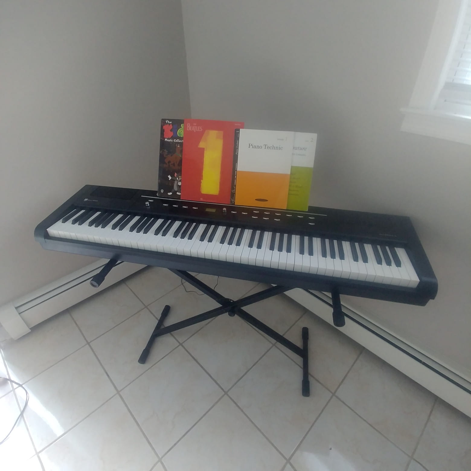 Full-size 88-key Williams Allegro 2 digital piano, with learning books and height-adjustable stand