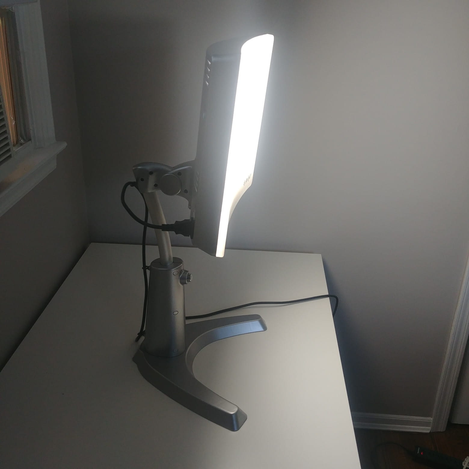 Strong sun lamp, suitable for light therapy or providing strong light for photography. Helps against winter blues.